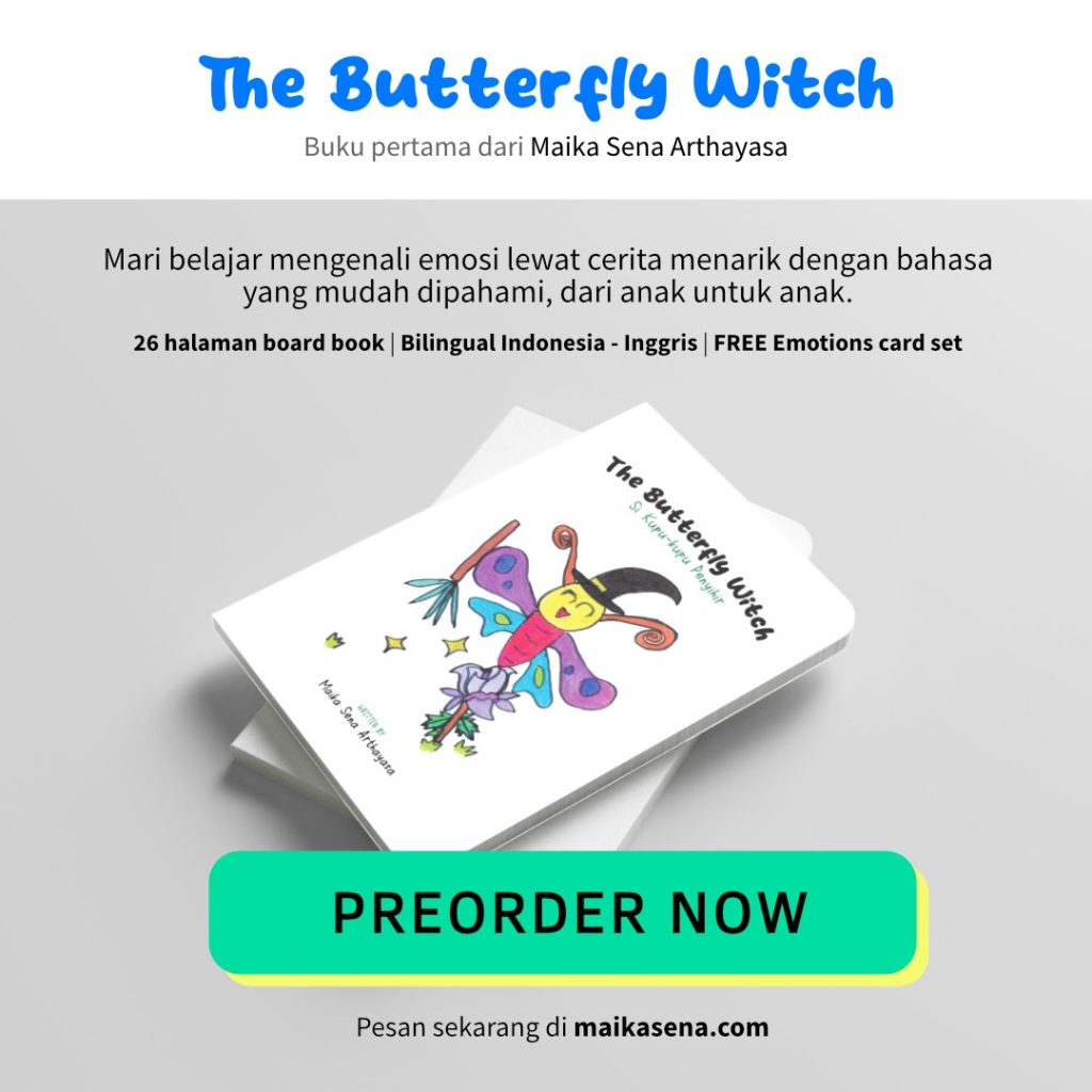 Baru-baru ini, anak pertama saya yang berusia 7 tahun menerbitkan buku pertamanya berjudul The Butterfly Witch. Sebuah buku tentang perjalanan emosi yang disampaikan lewat sudut pandang anak 7 tahun. Buku yang terinspirasi dari pengalaman pribadi dalam mengenali, memahami, dan menerima berbagai luapan emosinya.